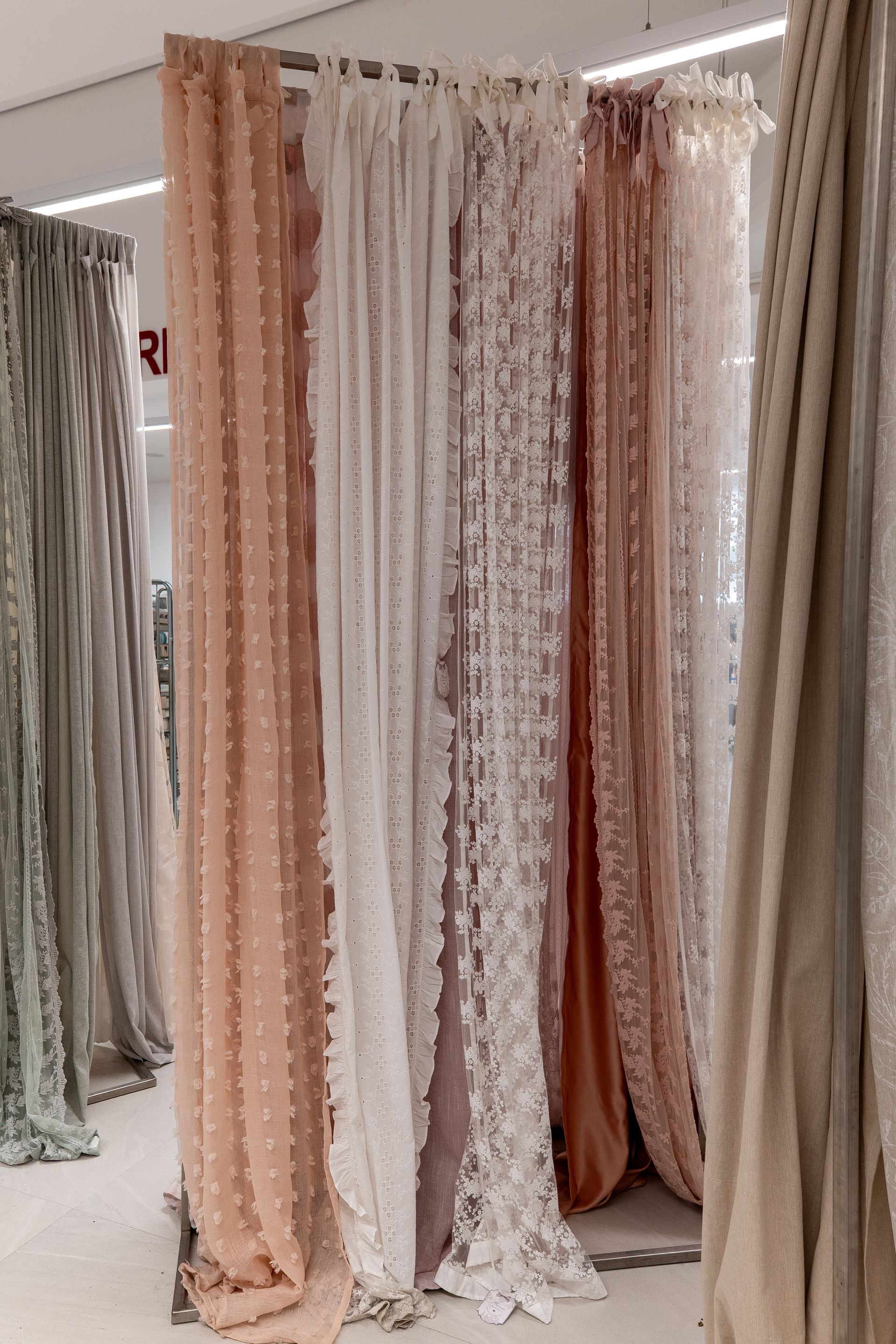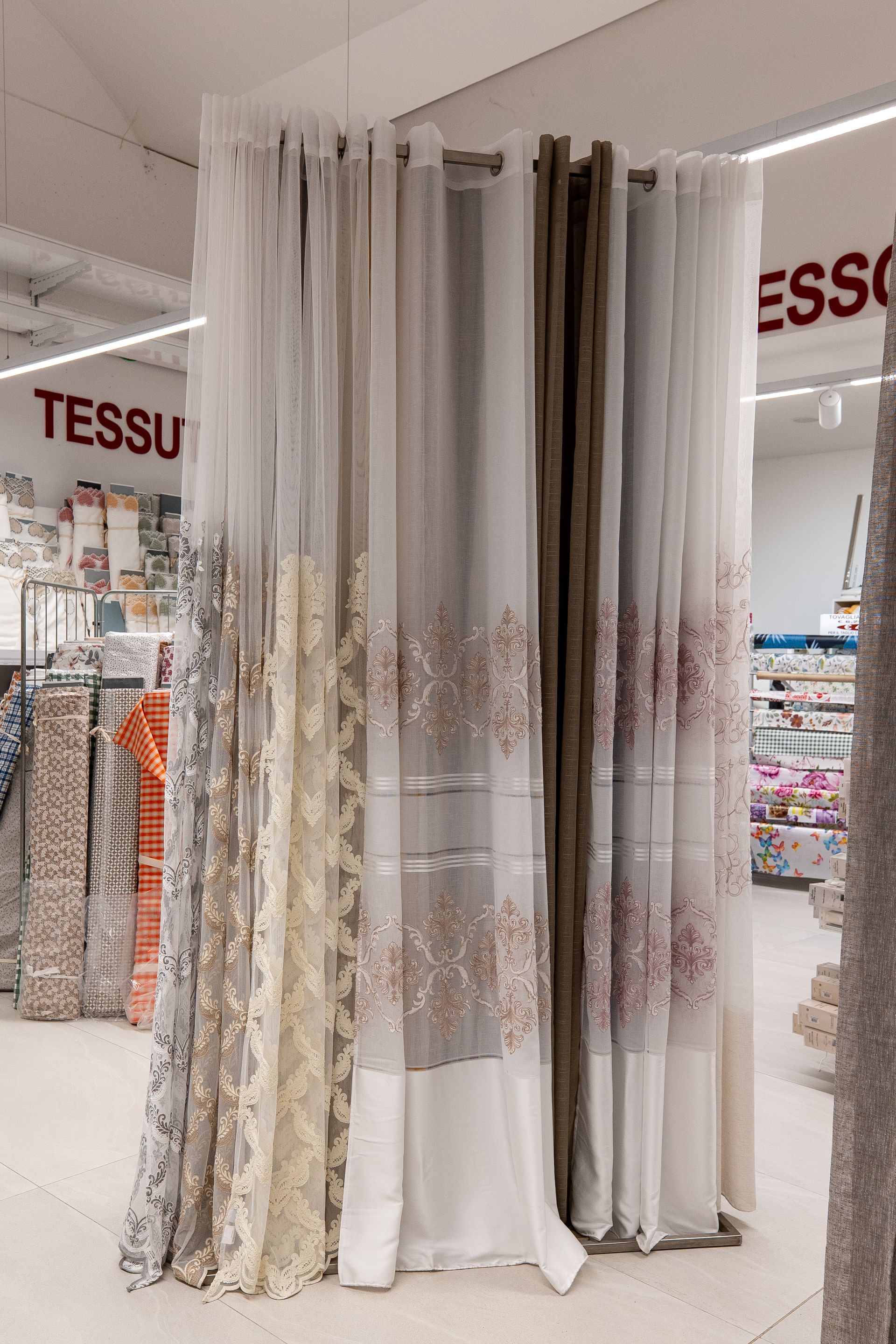 Grande reparto tende d'arredo confezionate e su misura con tessuti a metraggio realizzate dalla sartoria interna